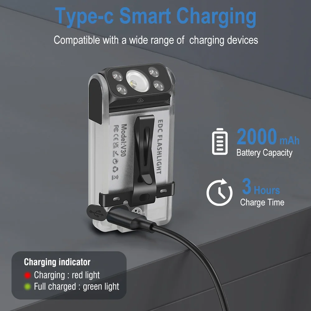BORUiT V30 EDC LED Flashlight Keychain Power bank