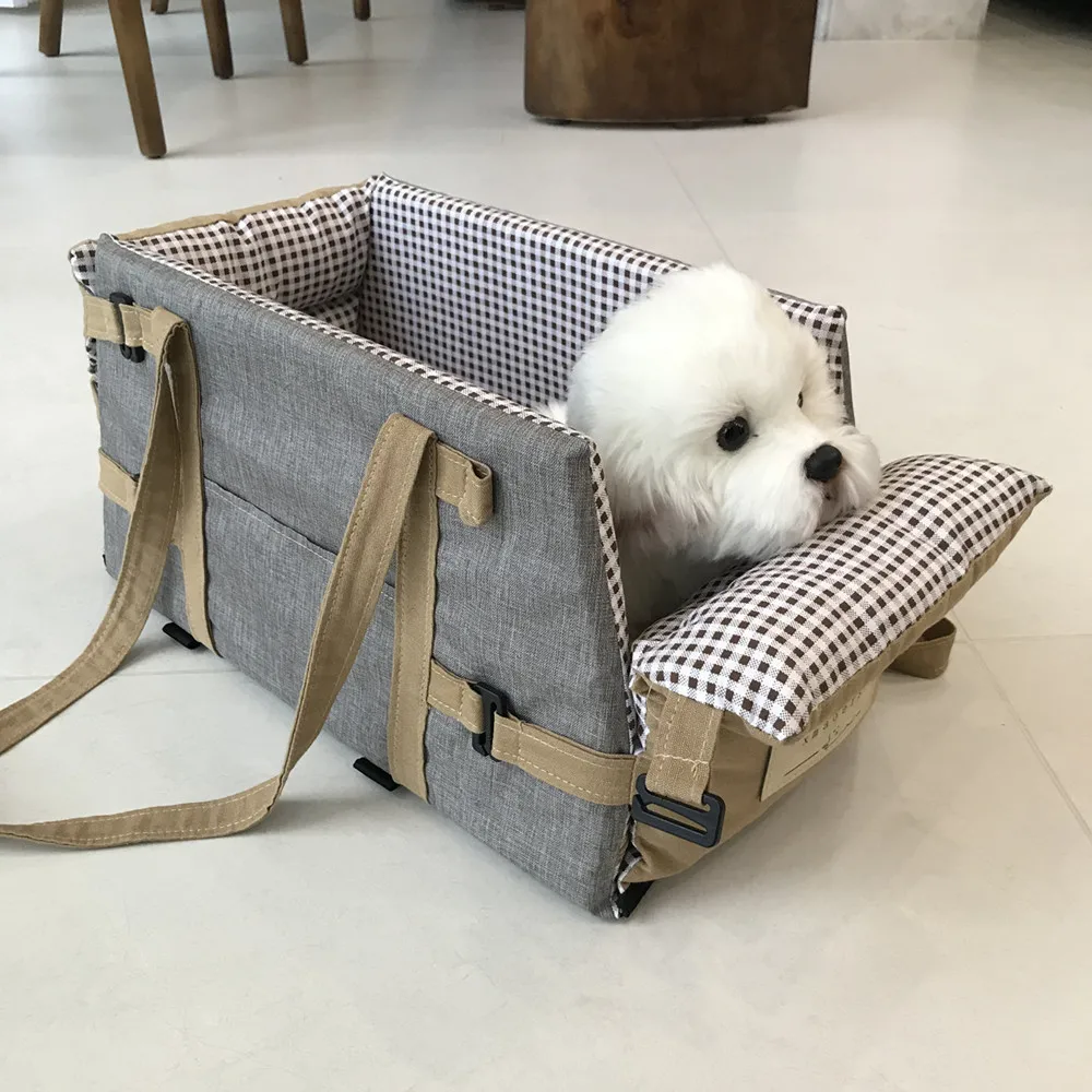 Center Console Dog Car Seat10 lbs, Dog Console car seat for Small Dogs Middle (Blue/Gray),Safety Travel Dog Carrier Bag, Cat Carrier Bag