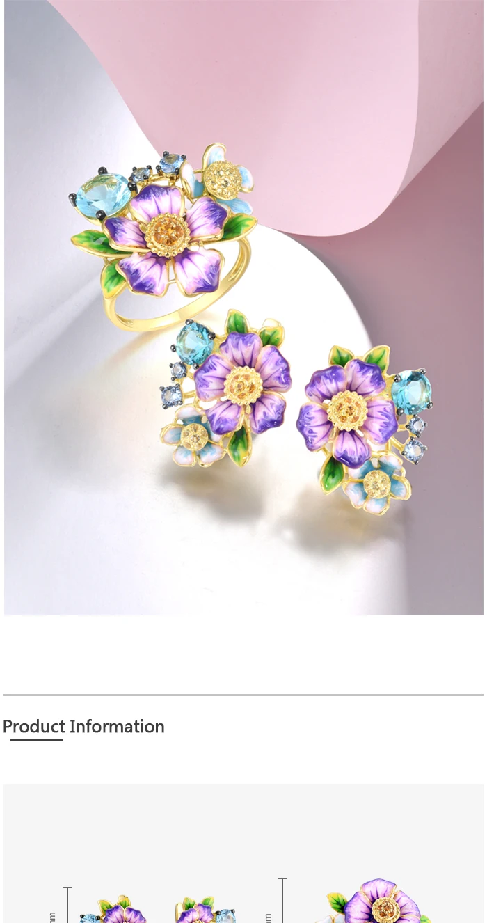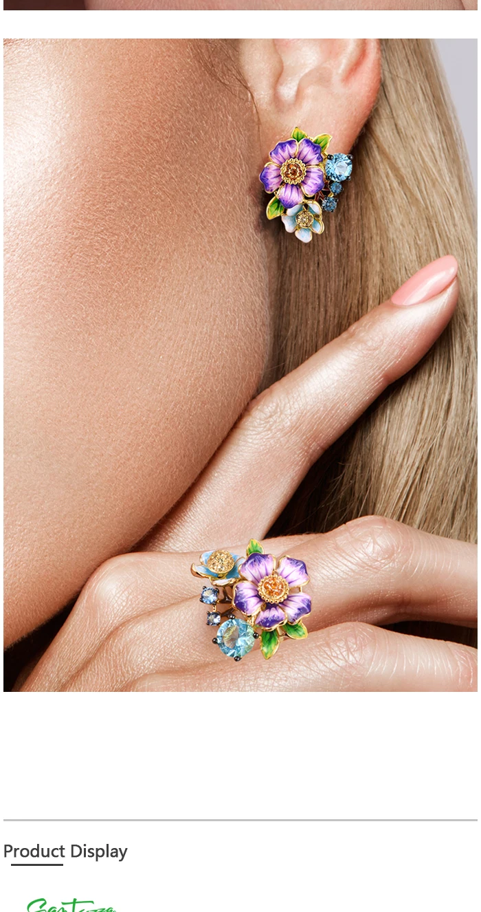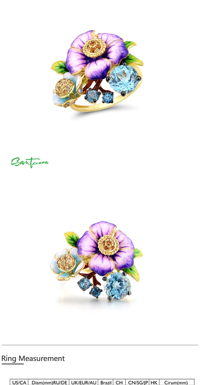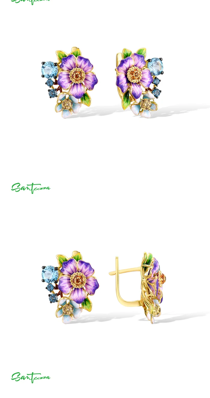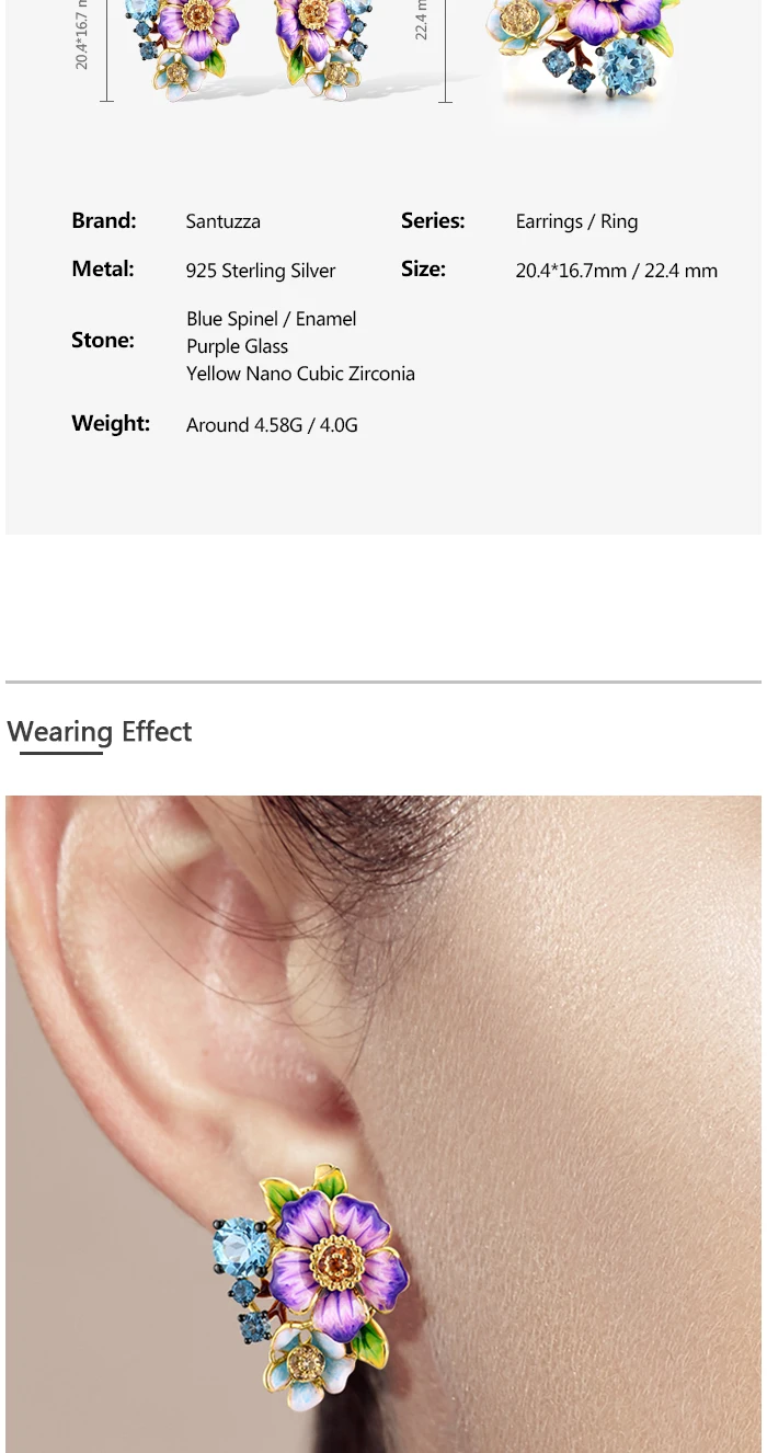 SANTUZZA 925 Sterling Silver Jewelry SetPurple Flower