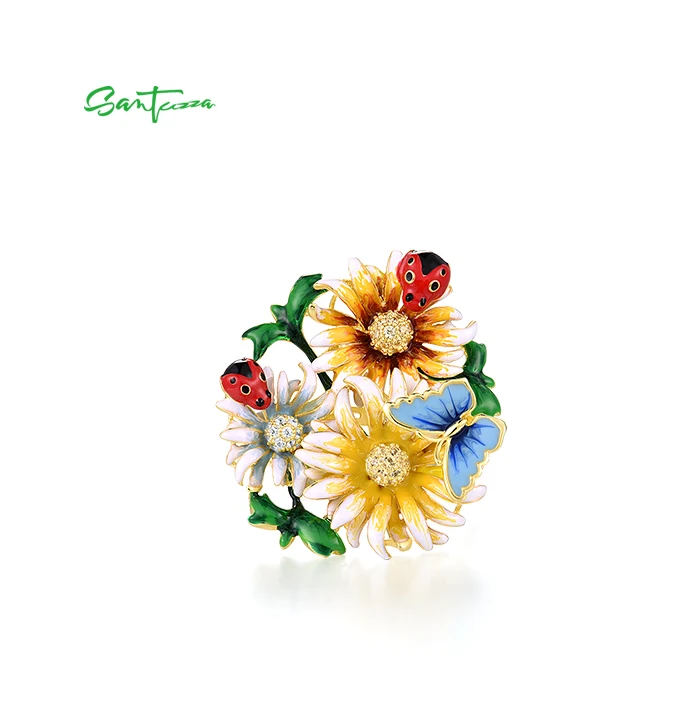 SANTUZZA 925 Sterling Silver Rings For Women Champagne Yellow
