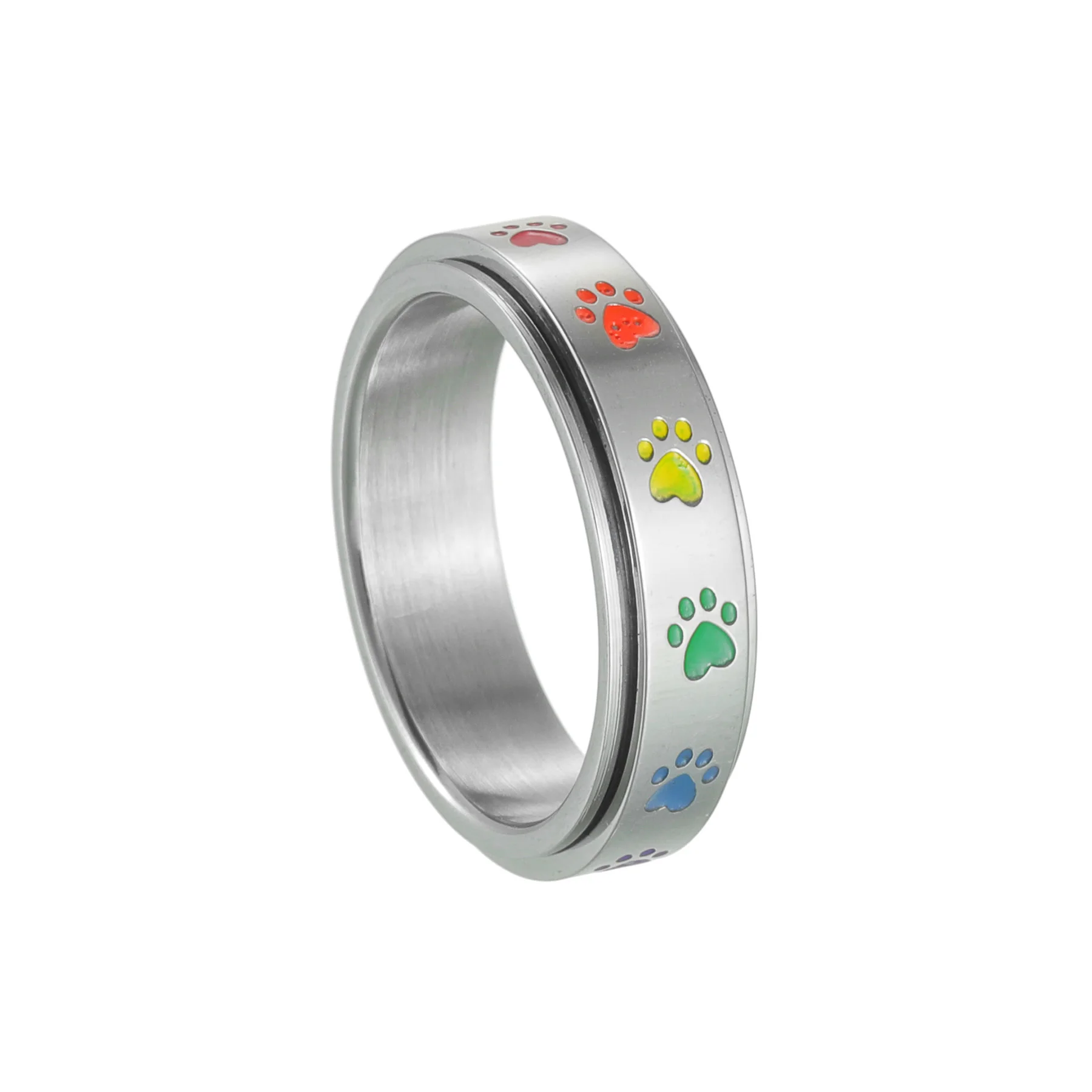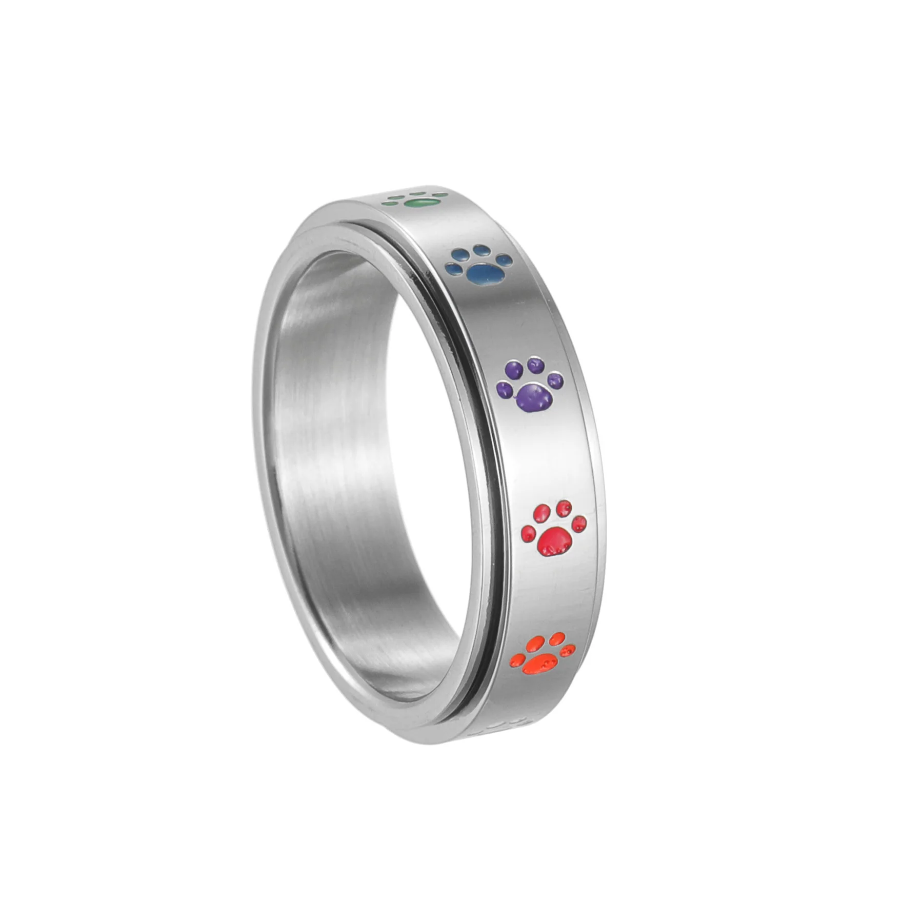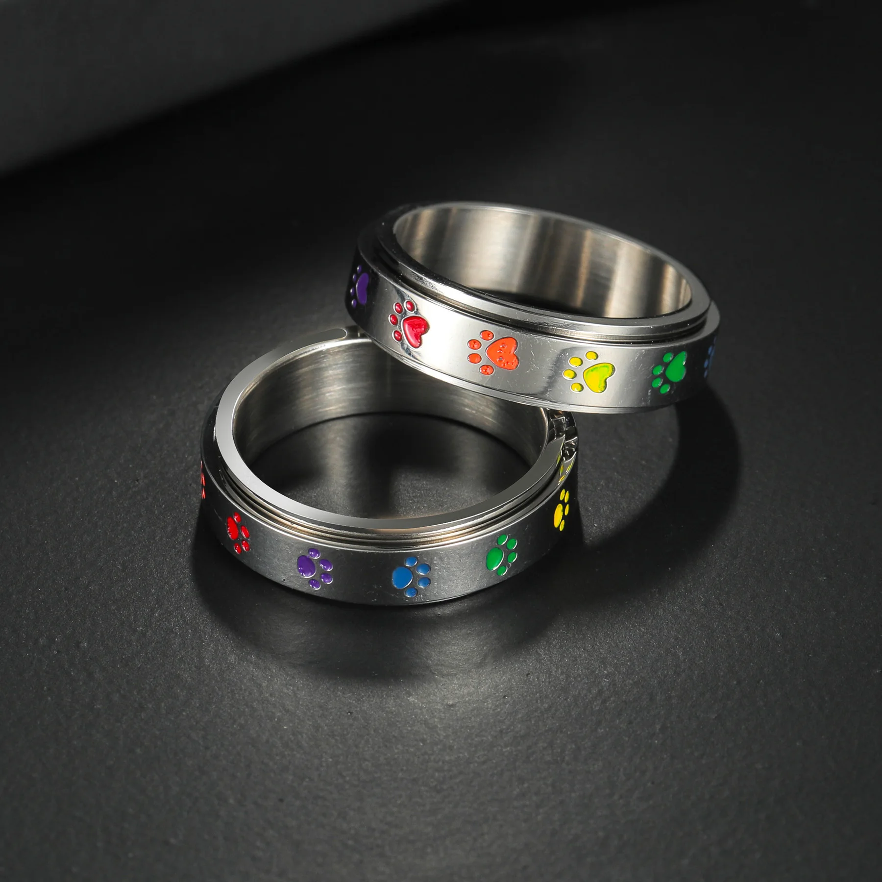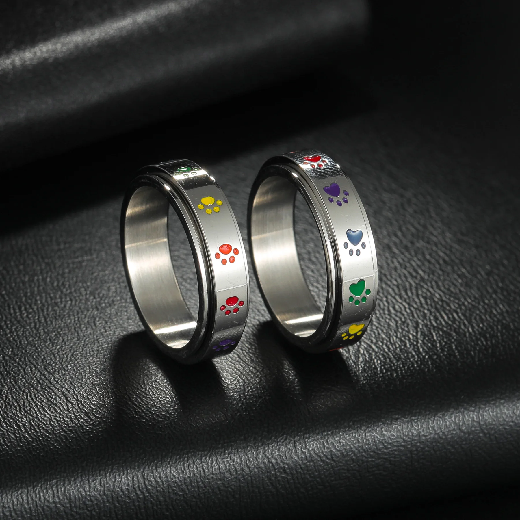 1.Title:Stainless Steel Anxiety Ring for Women Sweet Cute Rainbow Dog Cat Paw Fidget Spinner Rings Anti Stress Rings Jewelry